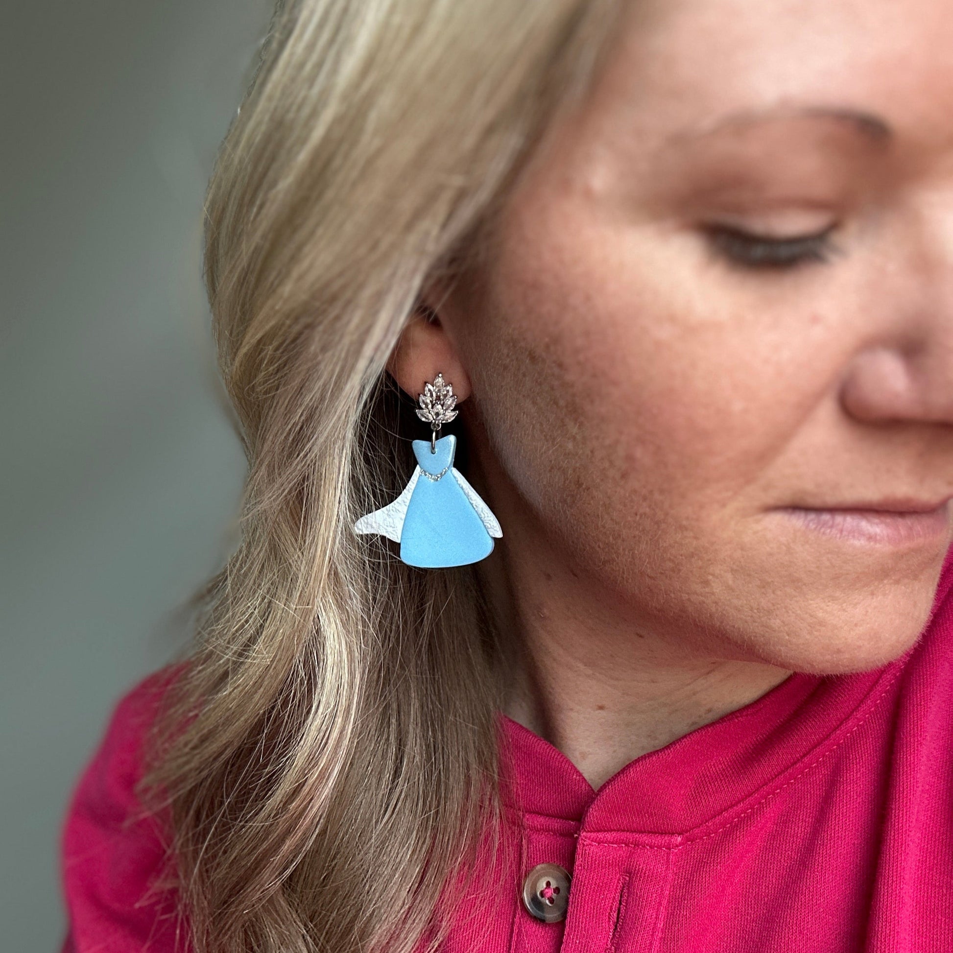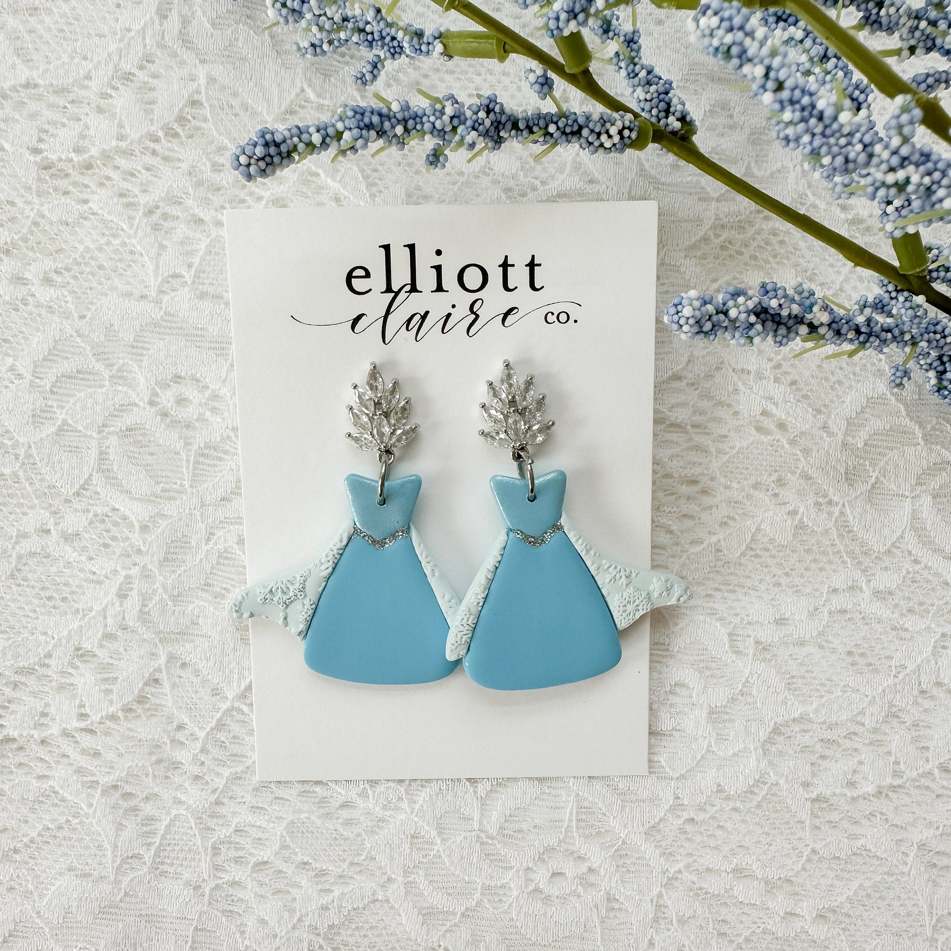 Handmade clay dangles measuring 2 inches in length with the cubic zirconia stud.