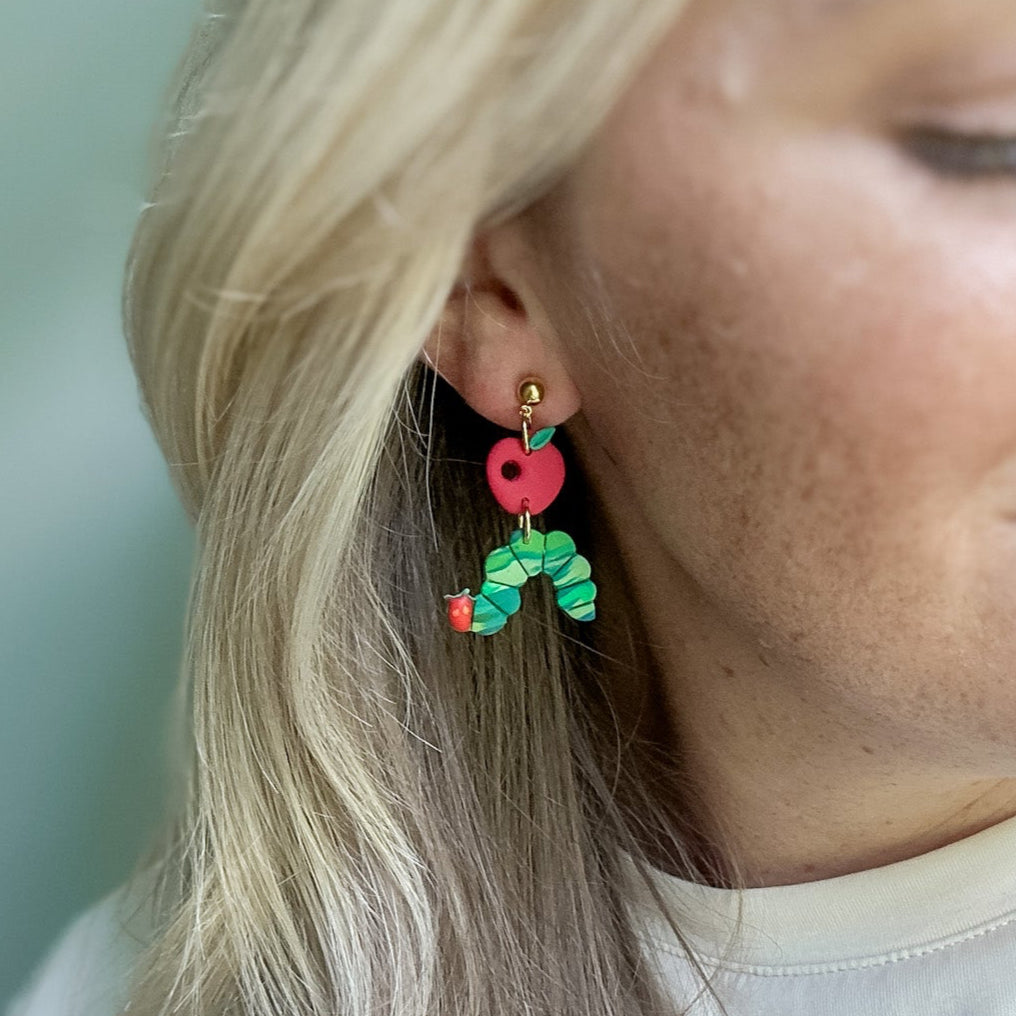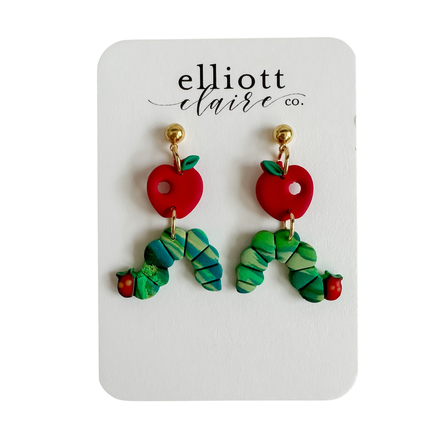 Lightweight, handmade clay dangles measuring 1 5/8 inches in length with gold ball point posts.