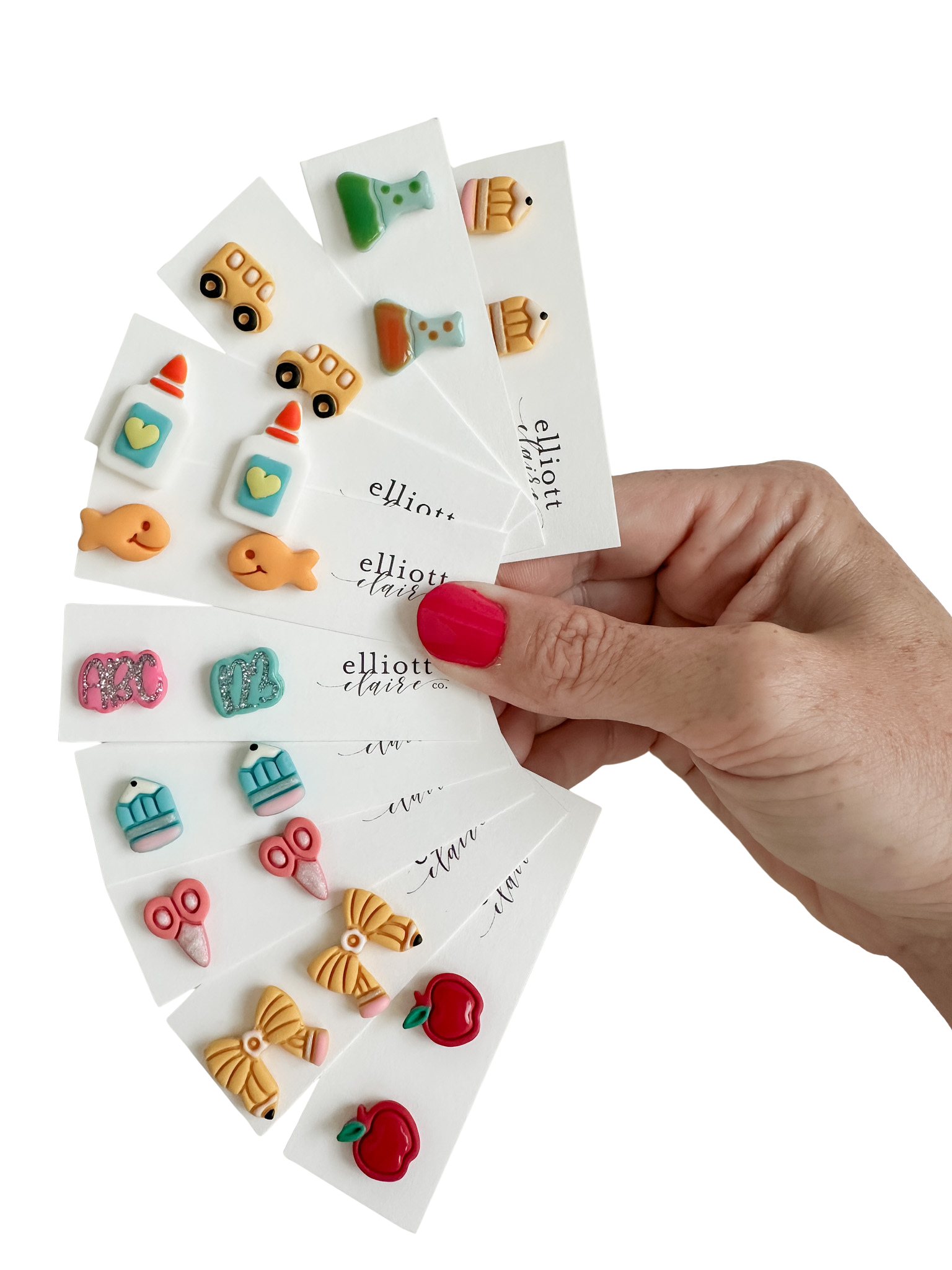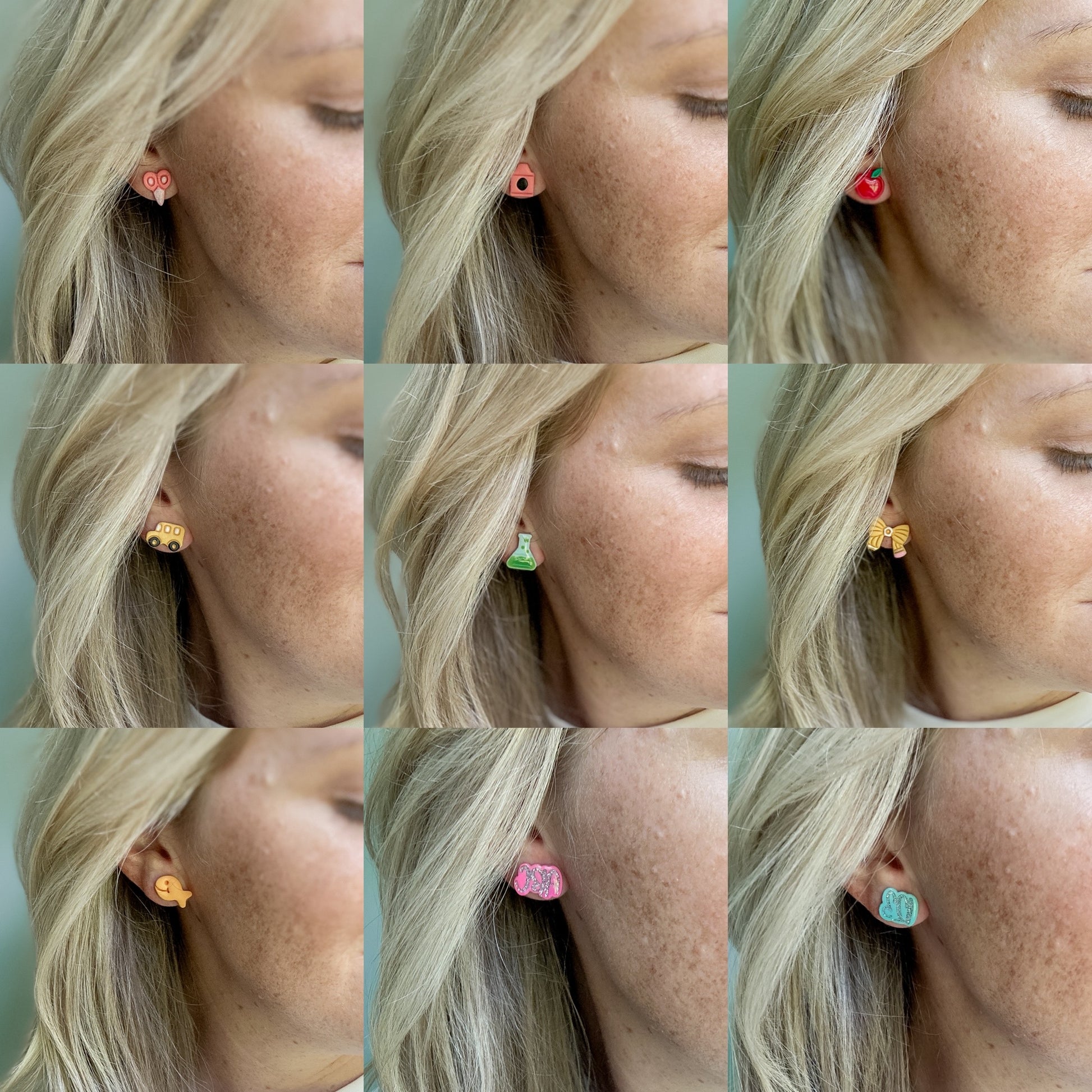 Handmade, lightweight clay studs with surgical stainless steel earring posts, perfect for those with sensitivities.
