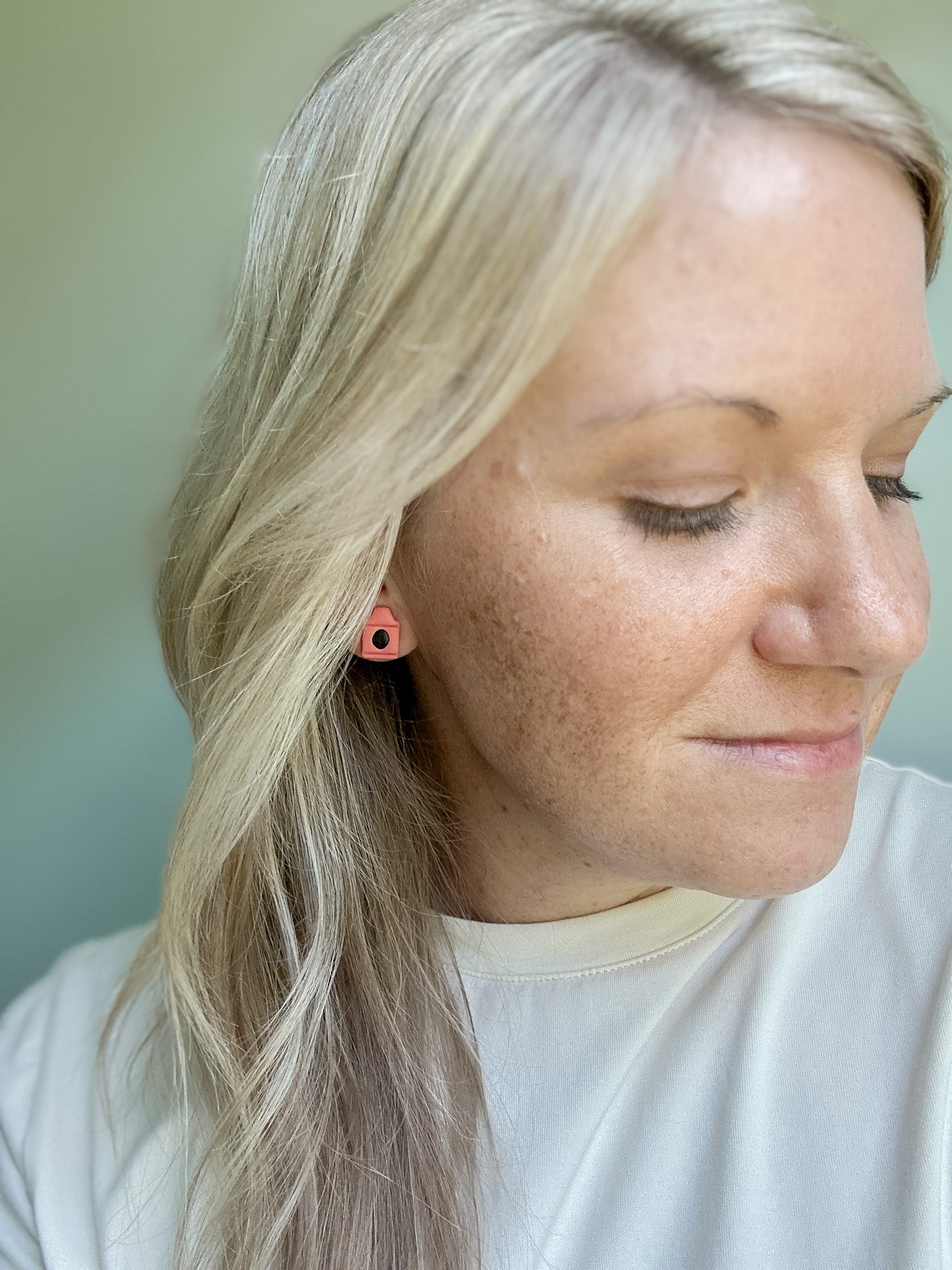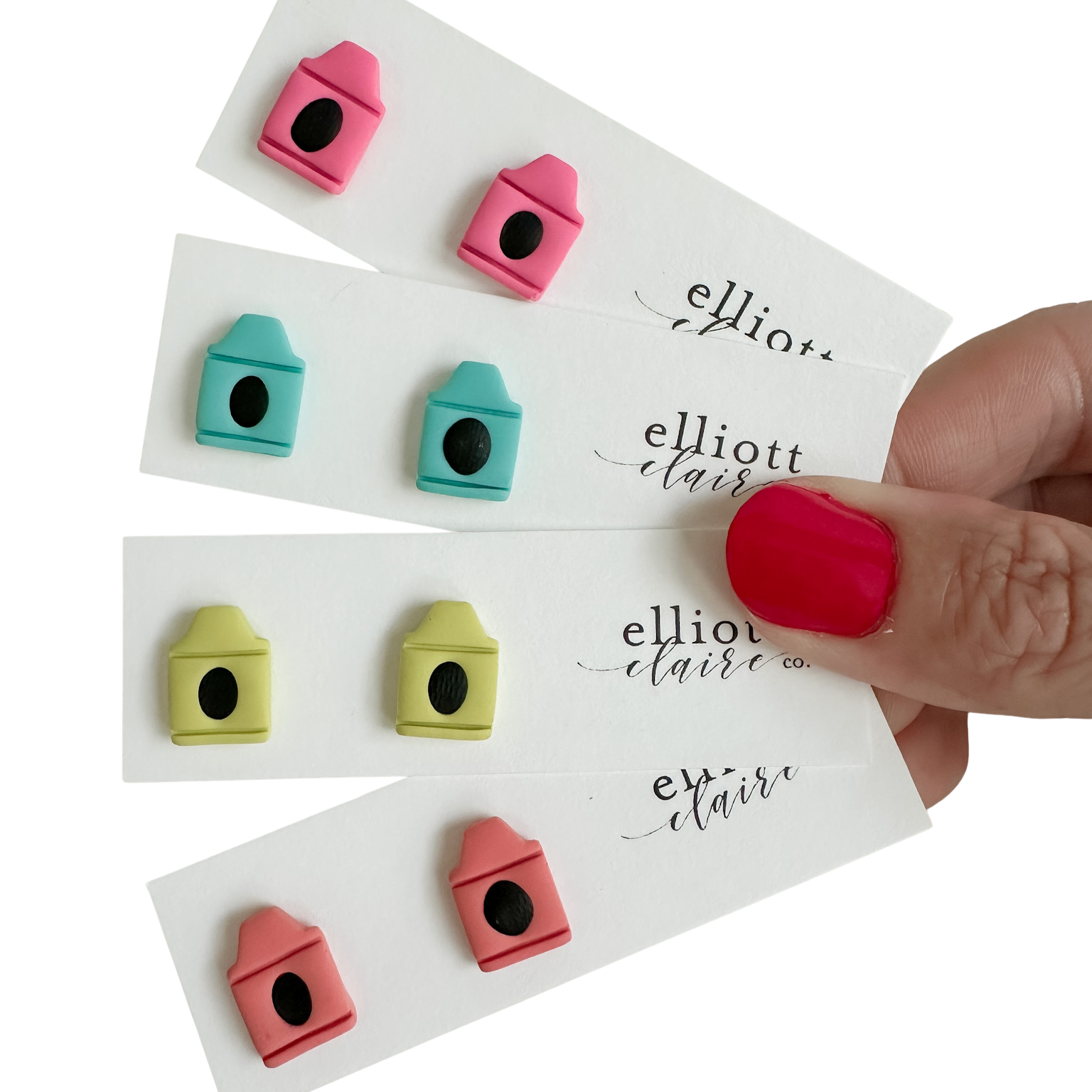 Handmade, lightweight clay studs with surgical stainless steel earring posts, perfect for those with sensitivities.