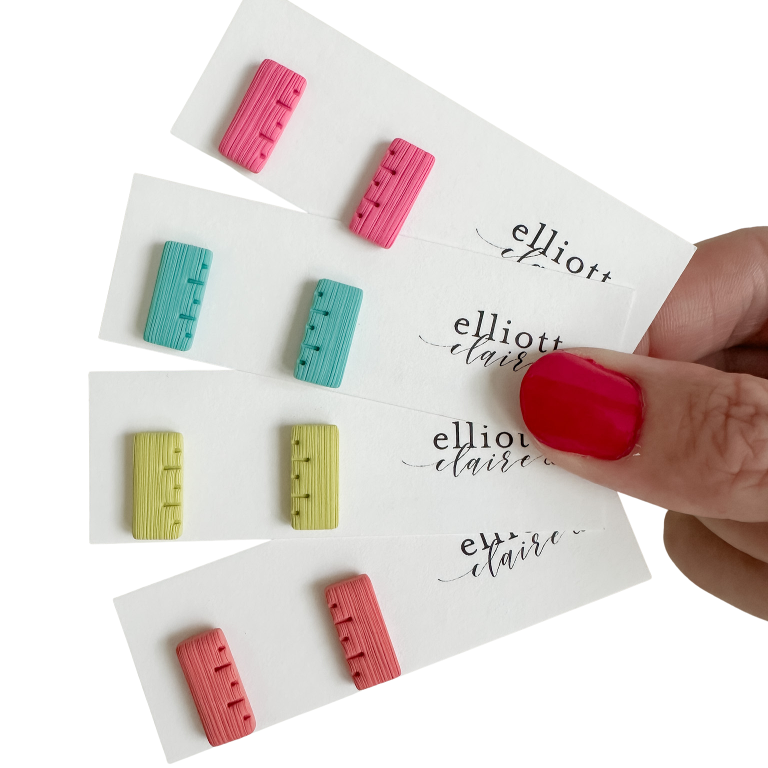 Lightweight, handmade clay studs with surgical stainless steel earring posts, perfect for those with sensitivities.