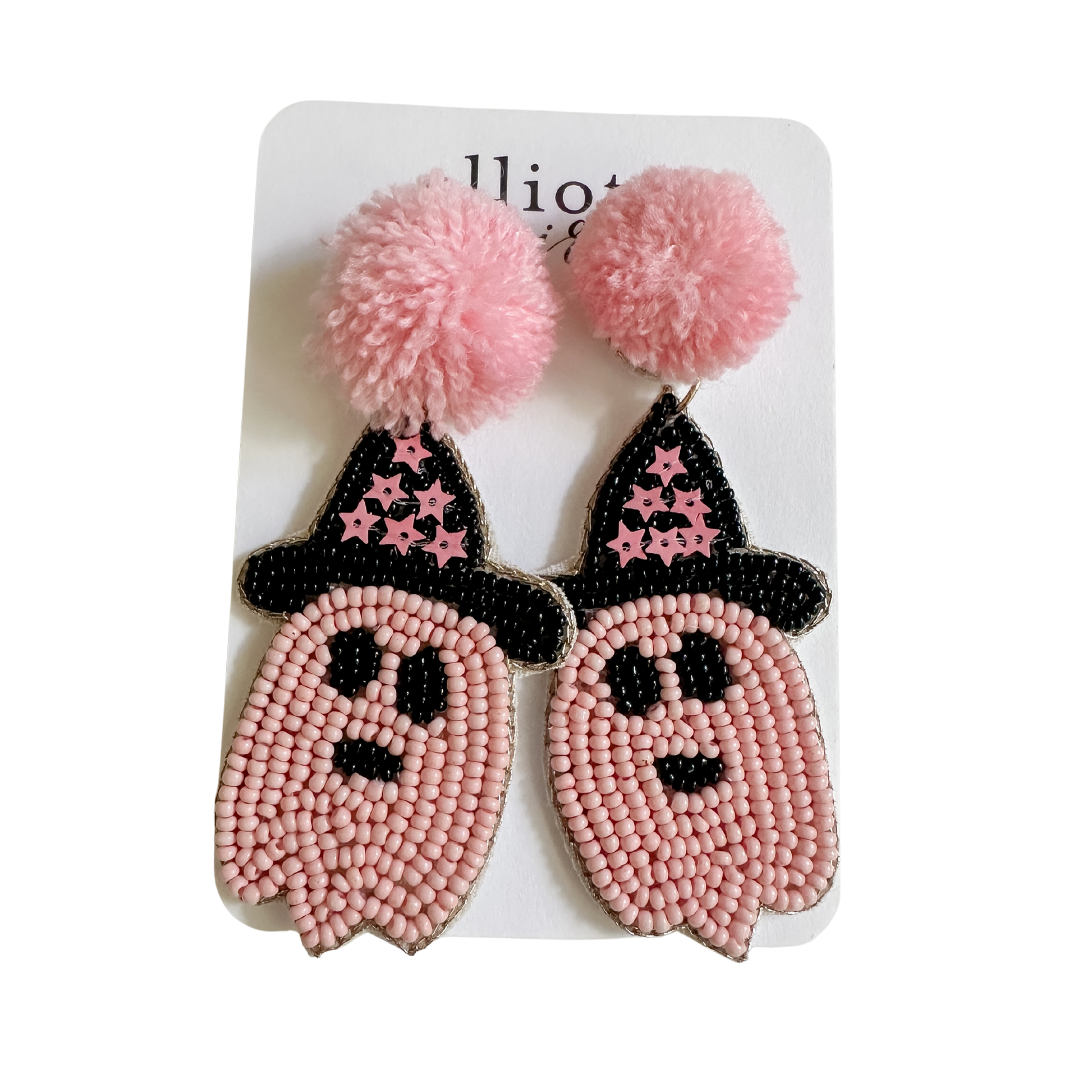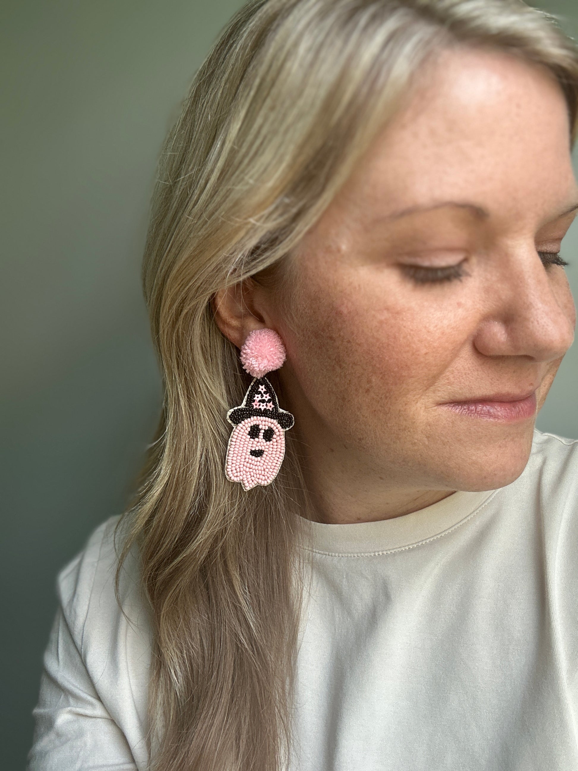 Lightweight beaded dangles with a pompom earring stud measuring 3 inches in length.