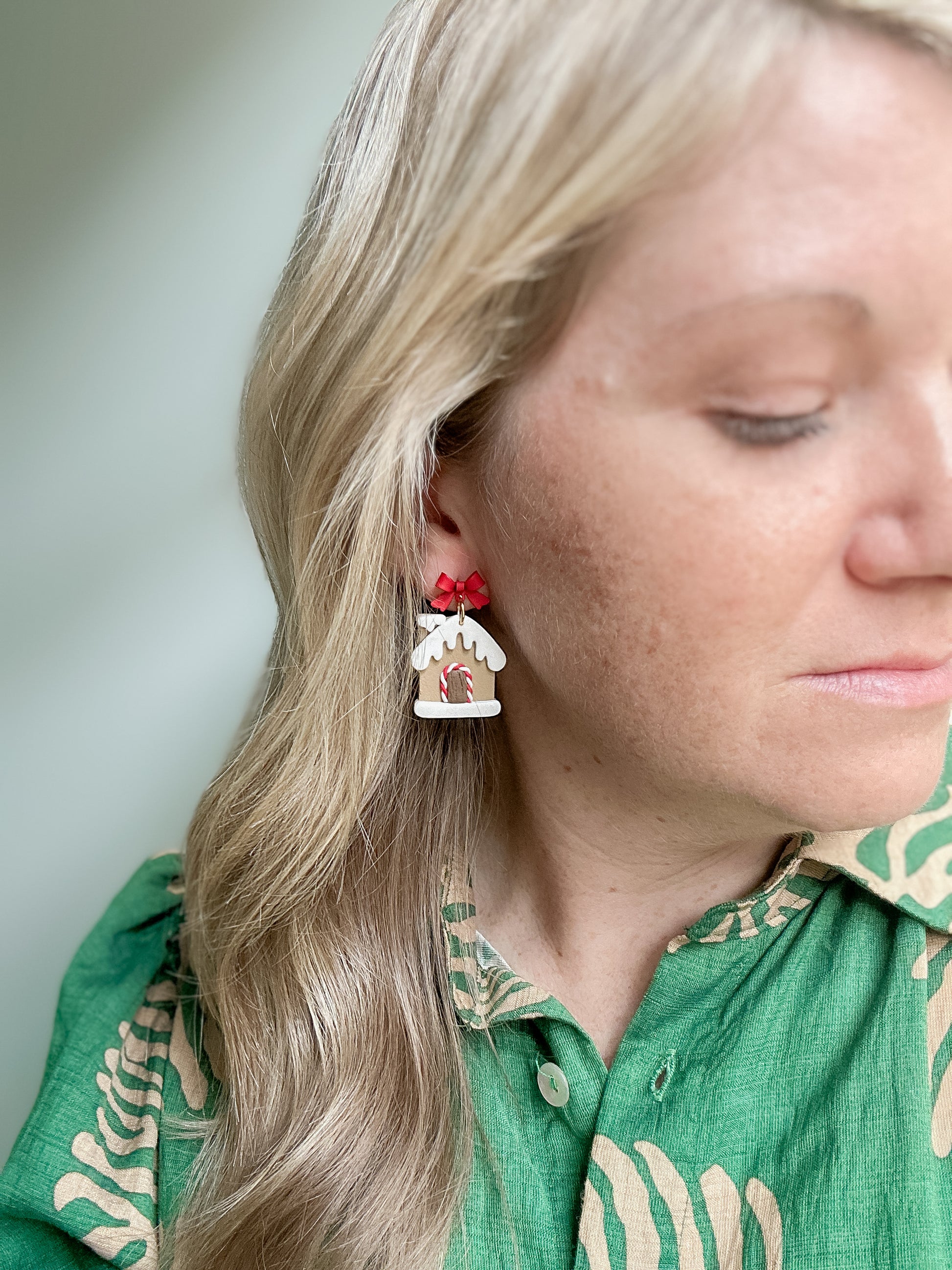 Lightweight, handmade clay dangles measuring 1 1/2 inches in length.