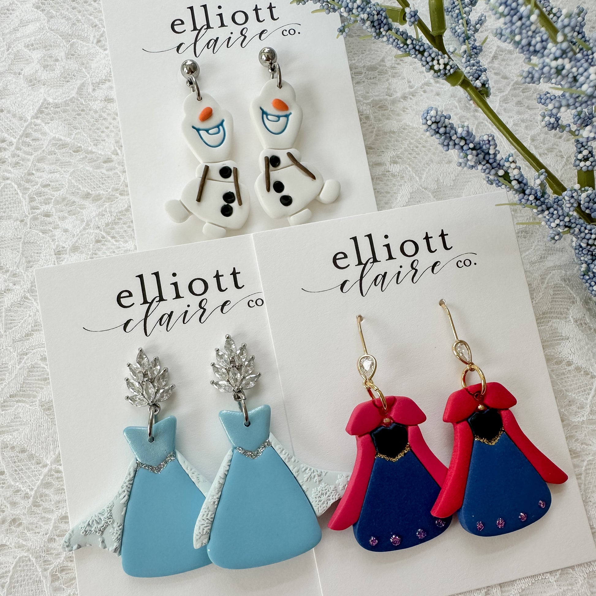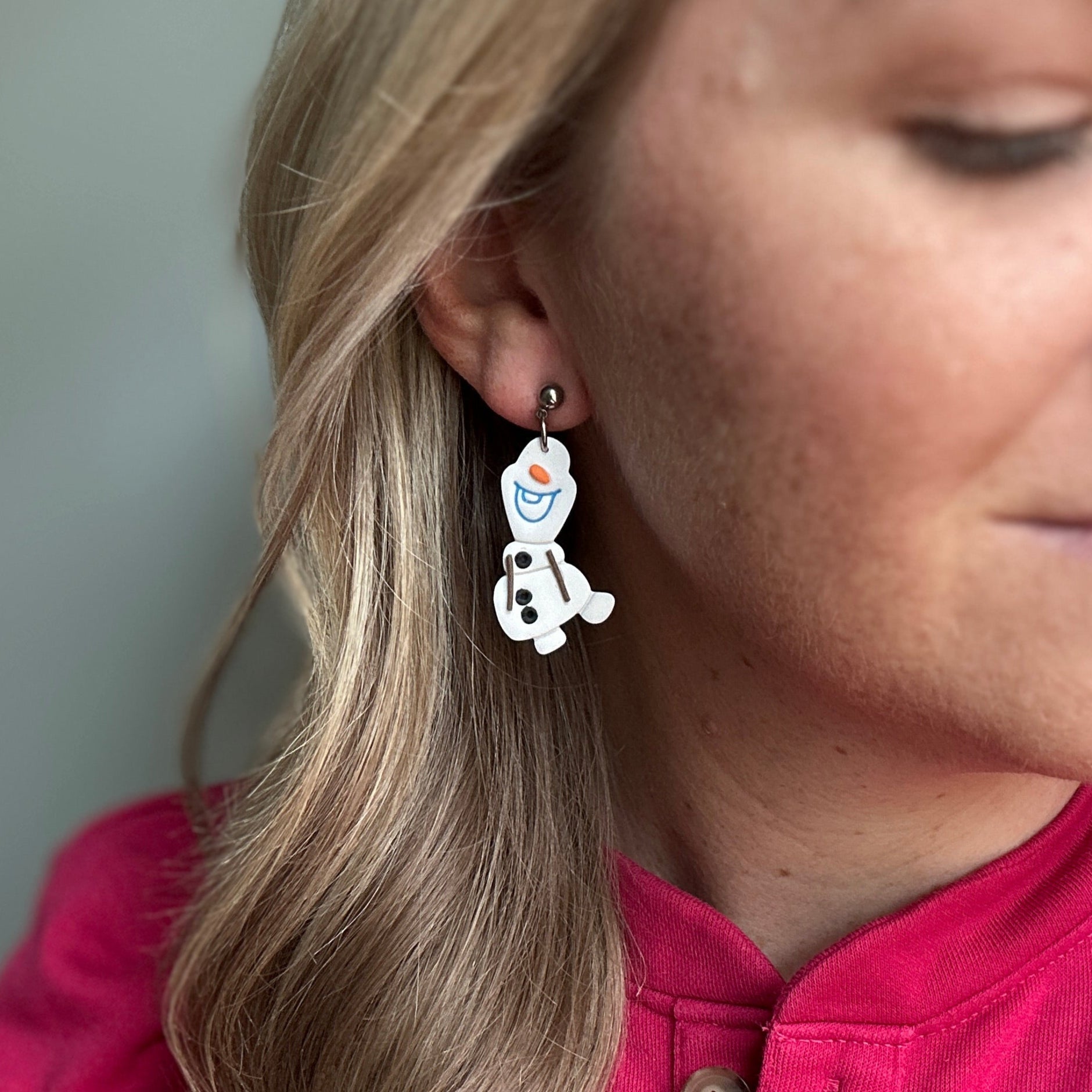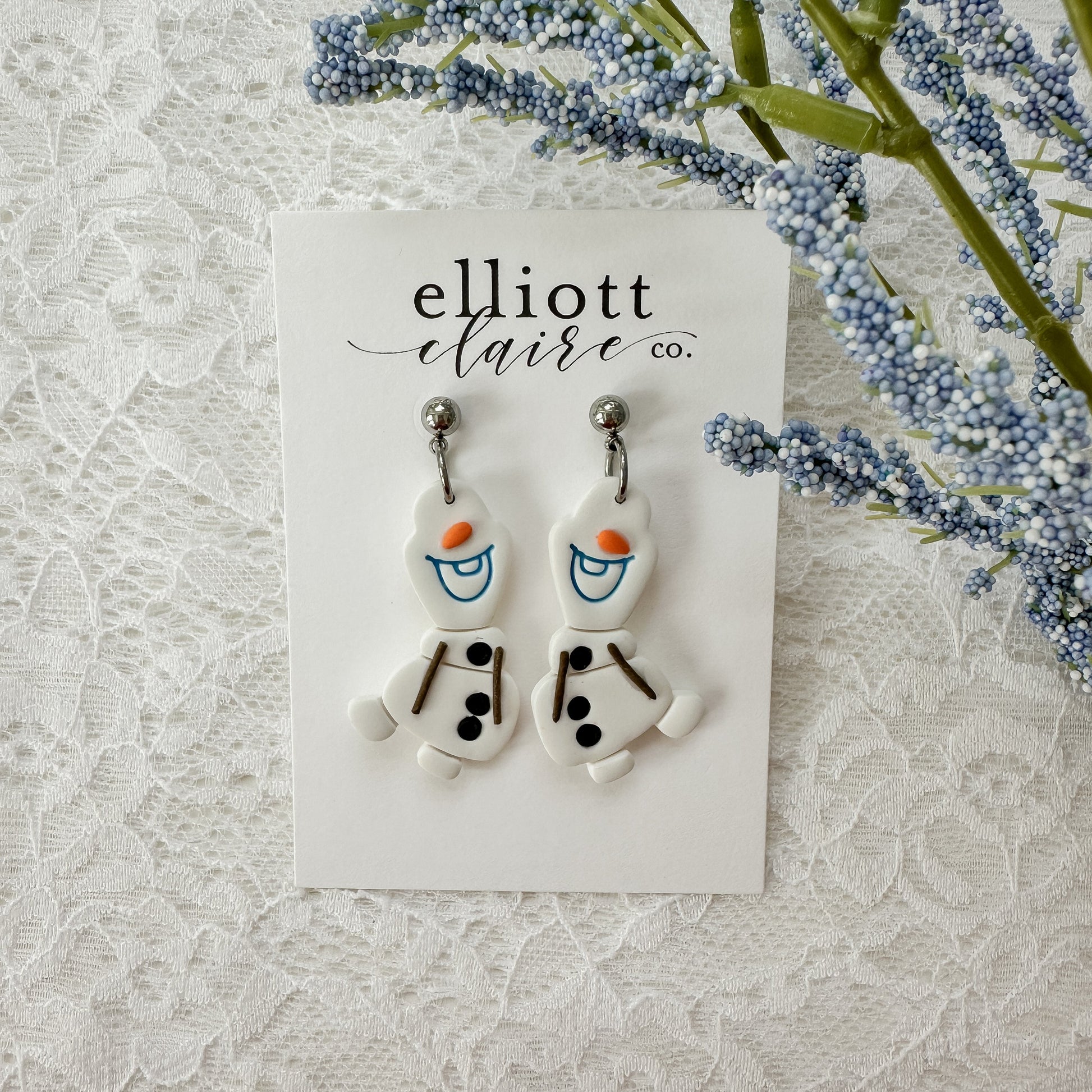 Handmade clay dangles measuring 2 inches in length with a silver ball point post.