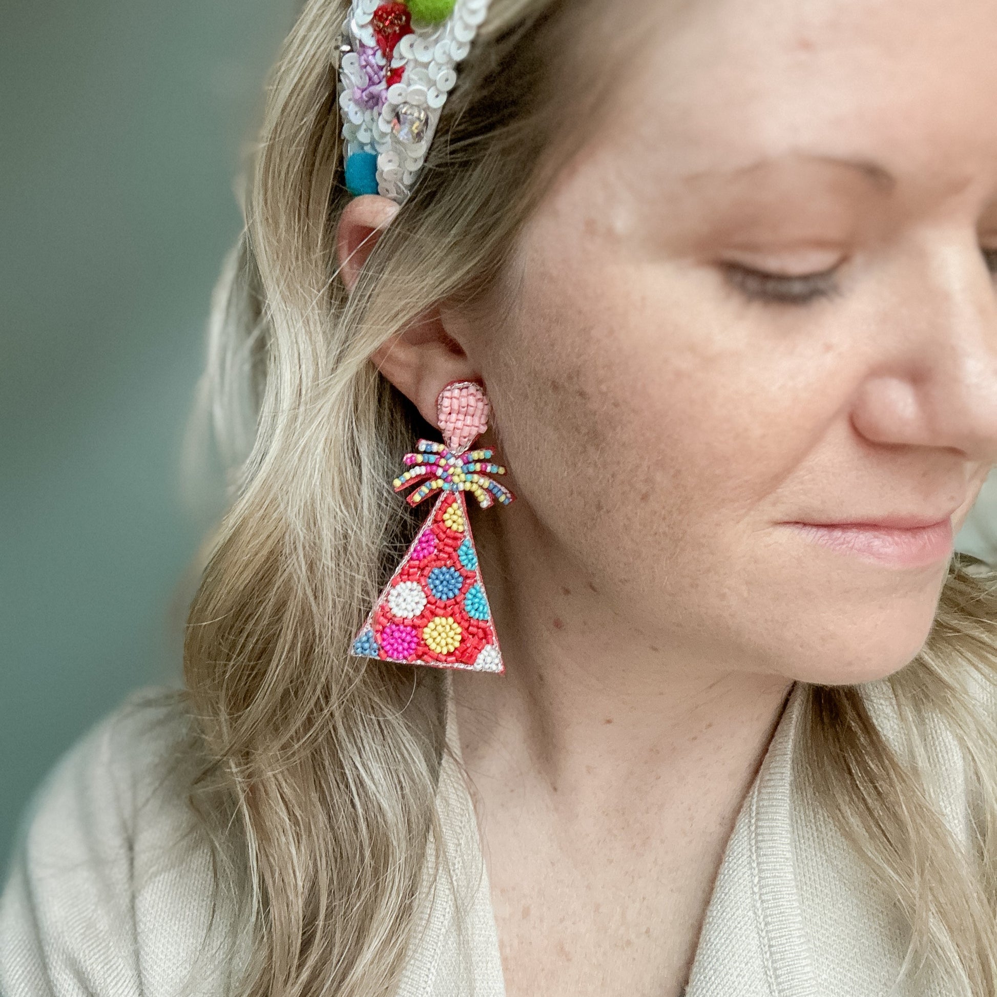 Lightweight seedbead earrings measuring 2 1/2 inches in length.
