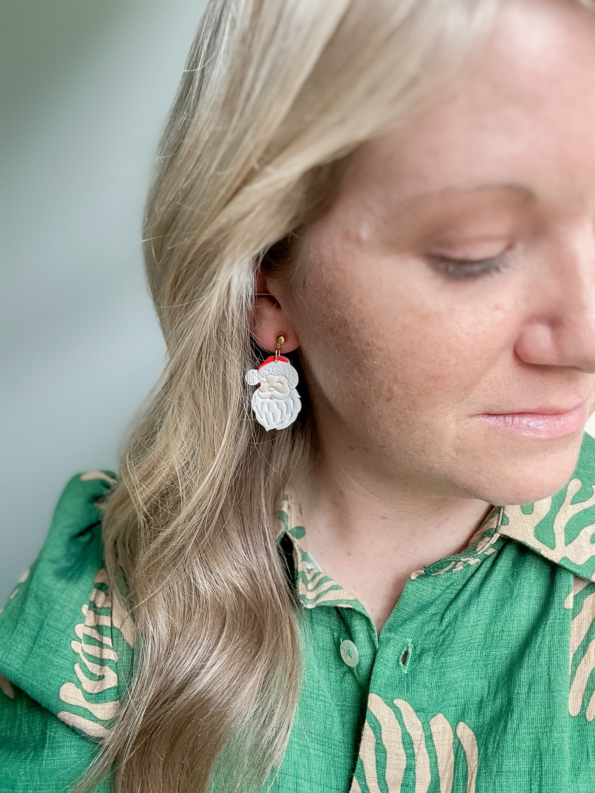 Lightweight, handmade clay dangles measuring just shy 1 3/4 inches in length.