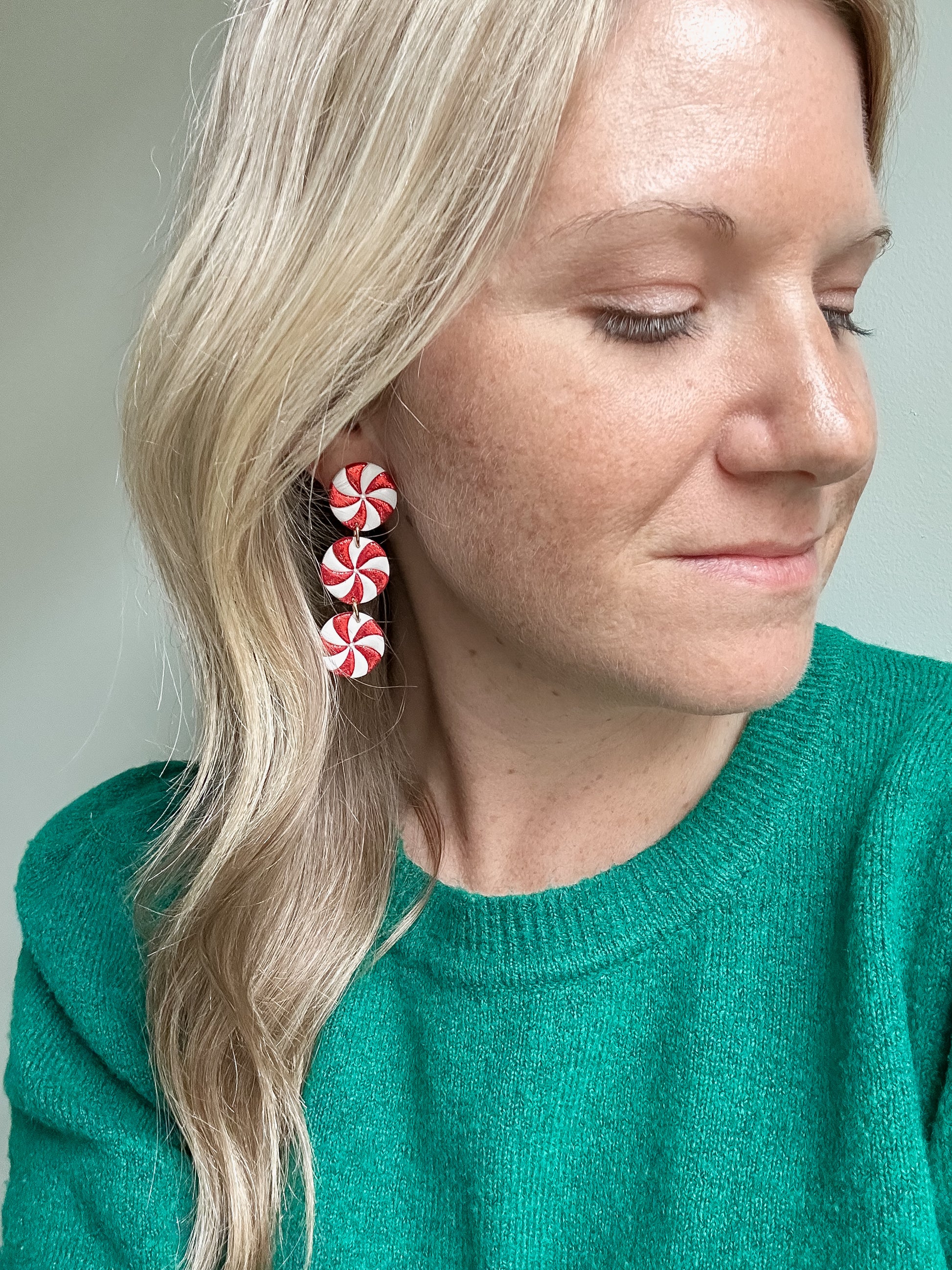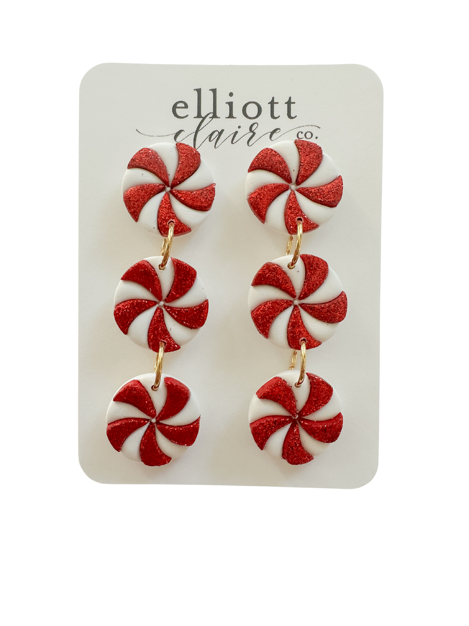 Lightweight, handmade clay dangles measuring 2 1/2 inches in length.