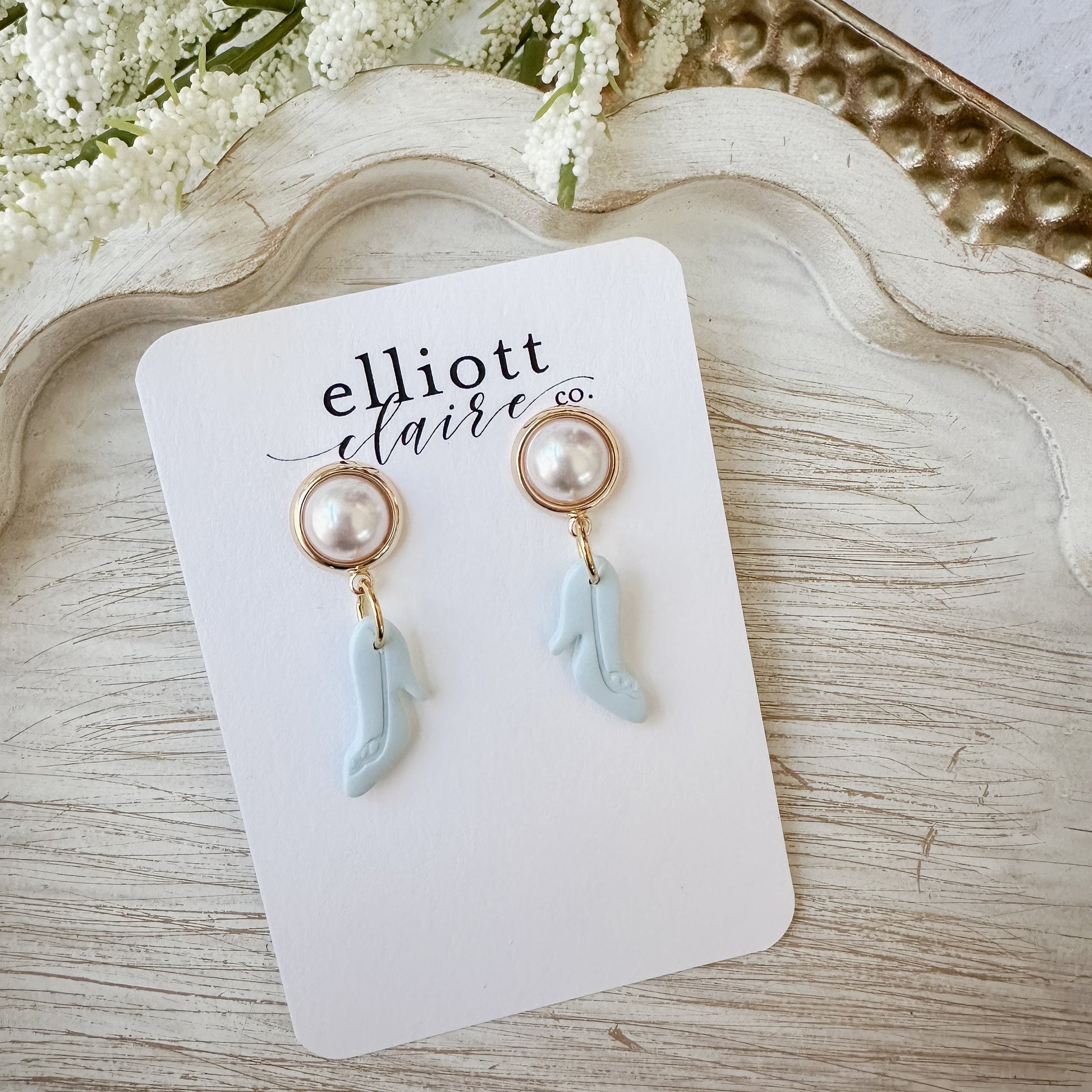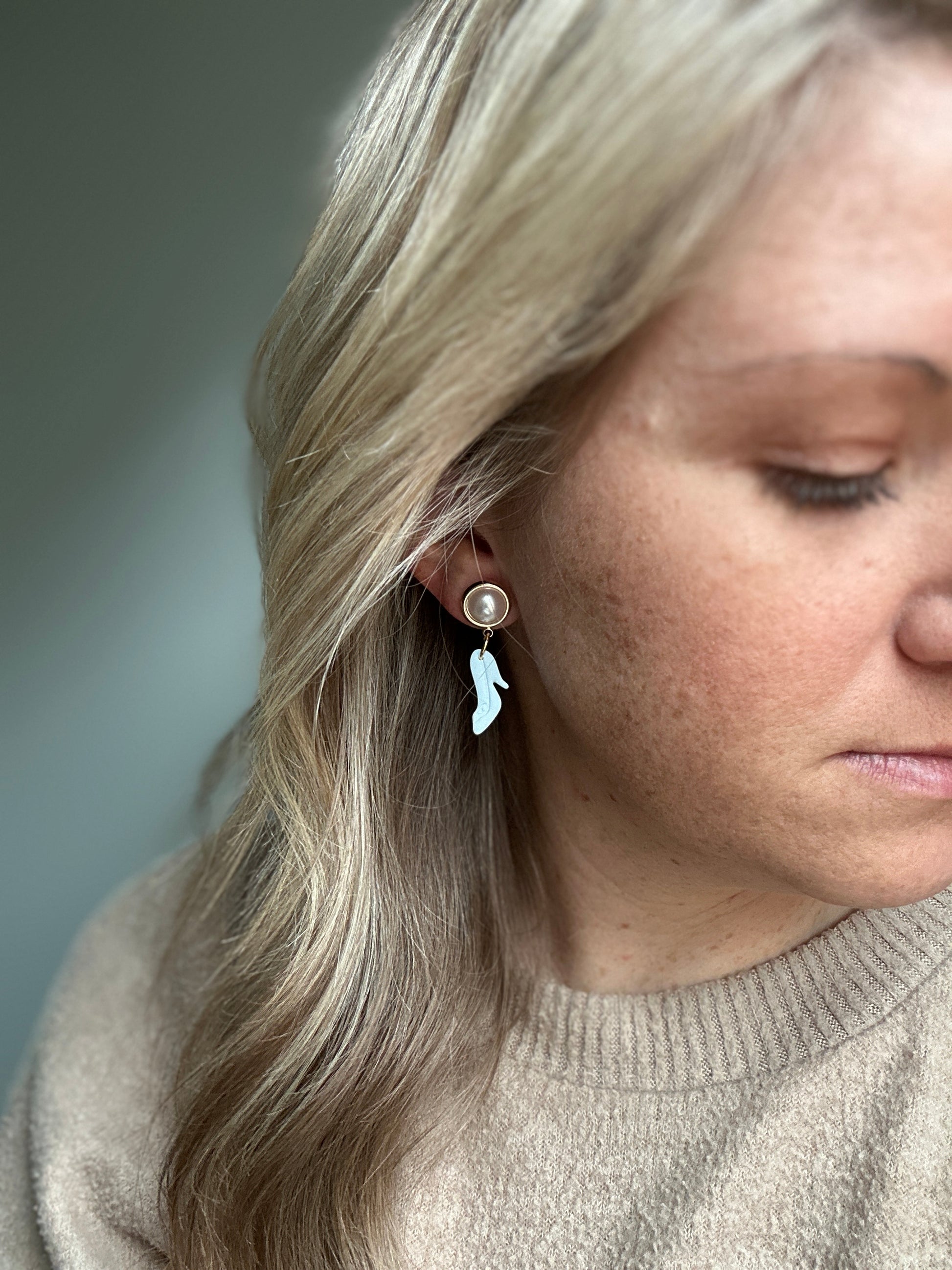 Handmade clay dangles with a pearl earring posts measuring 1 1/2 inches in length.