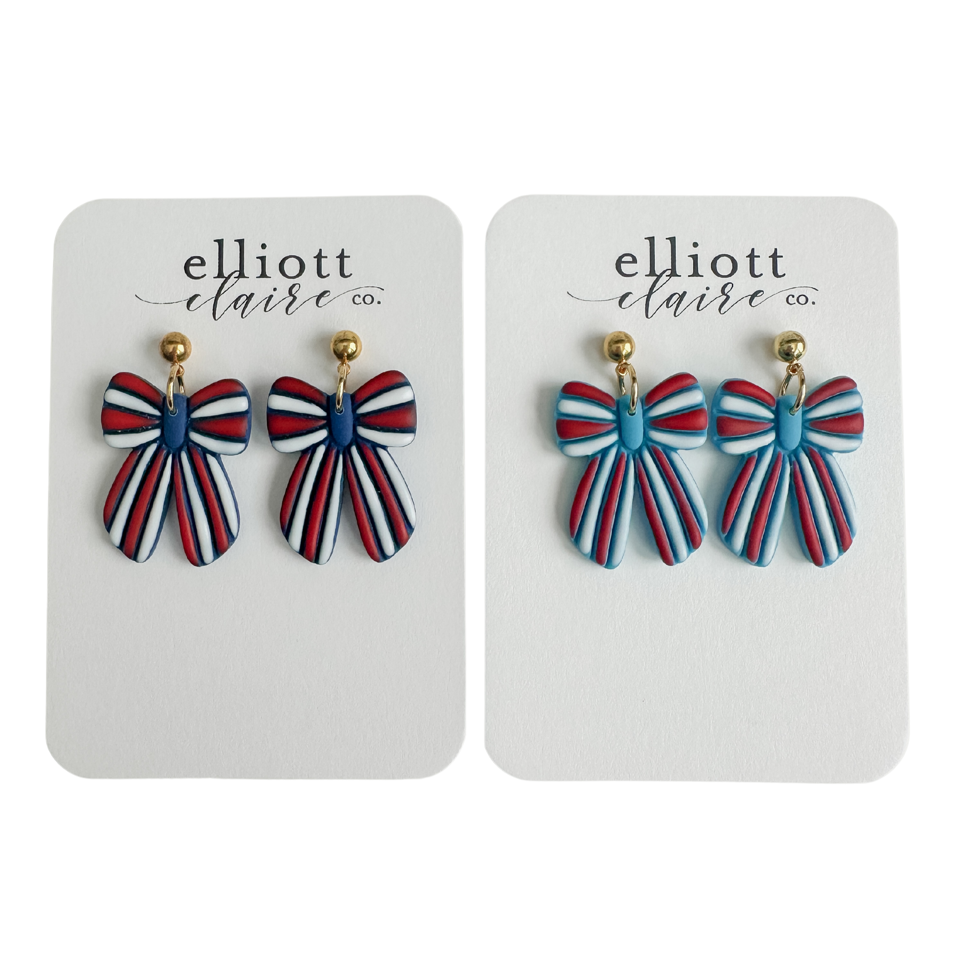 Handmade, lightweight clay dangles measuring 1 1/2 inches in length with a gold ball point post.