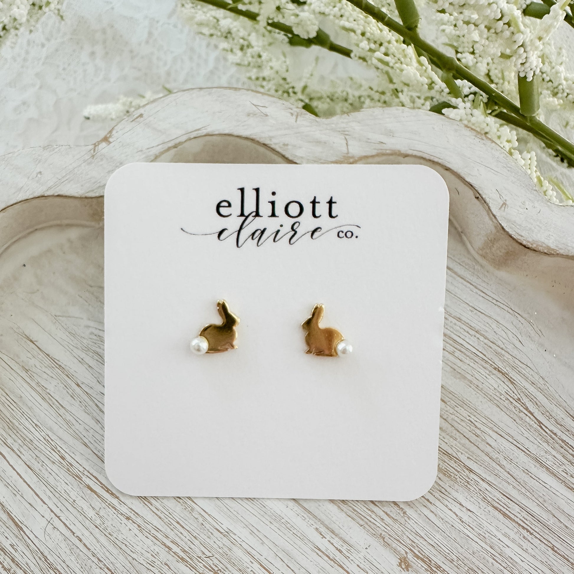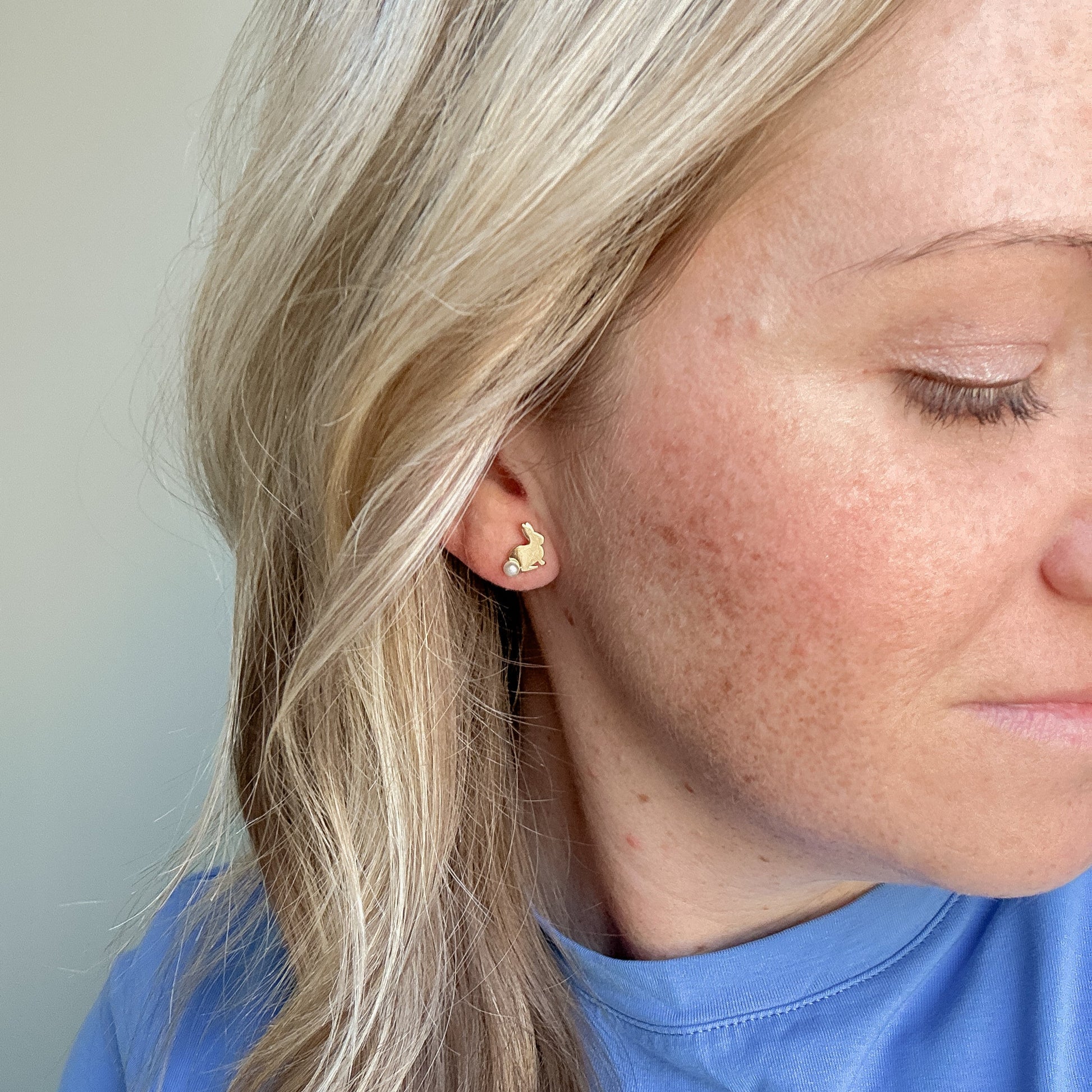 Gold dipped studs with faux pearls measuring just shy of 1/2 inch with sterling silver posts.