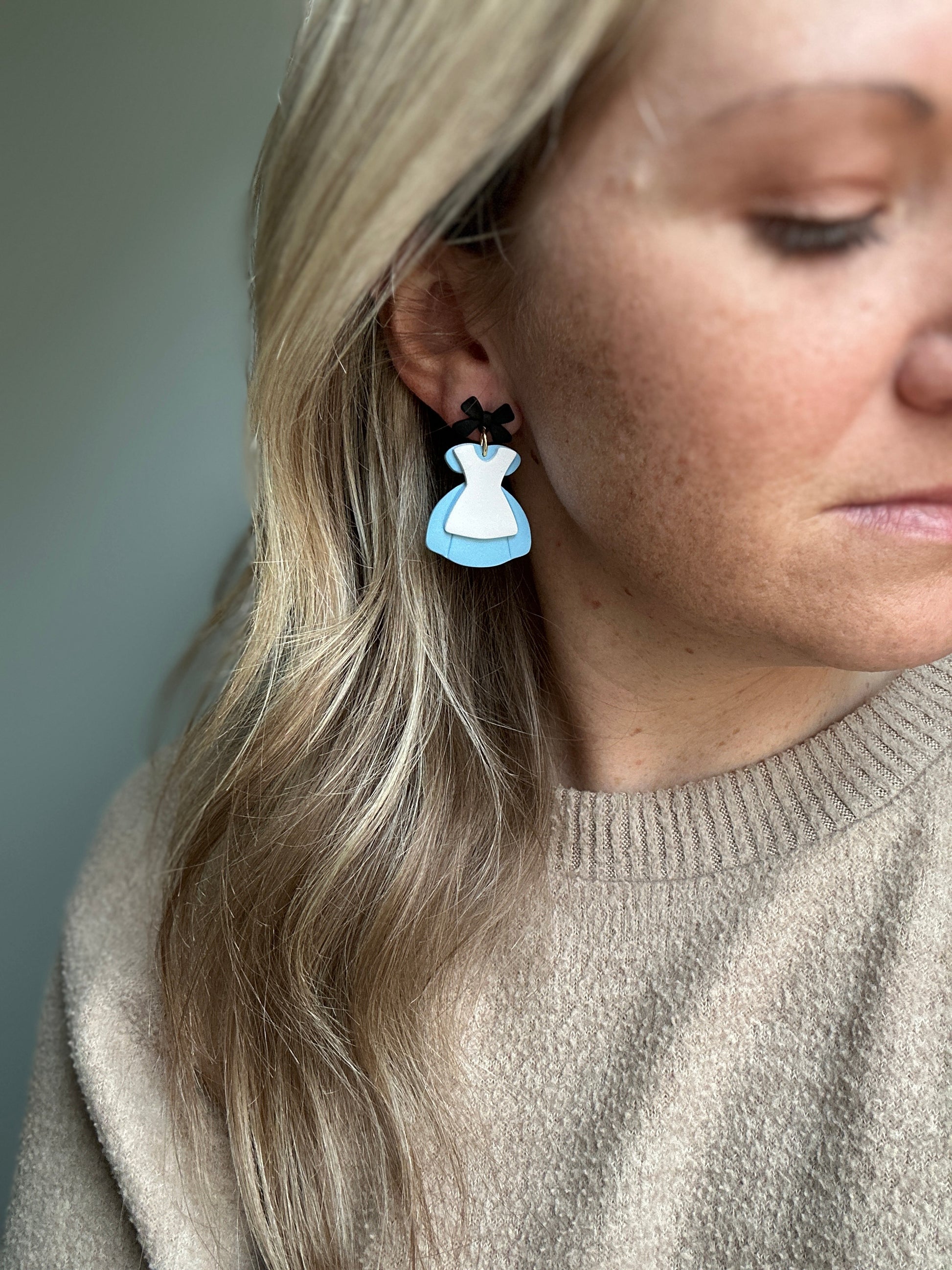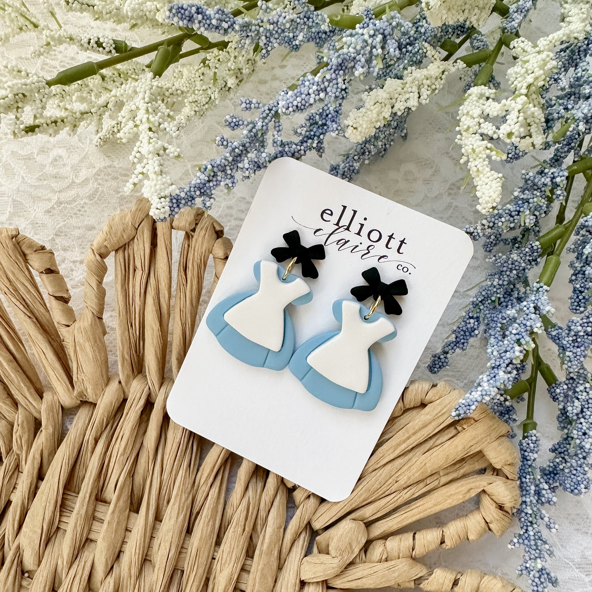 Handmade clay dangles measuring 1 1/2 inches in length.