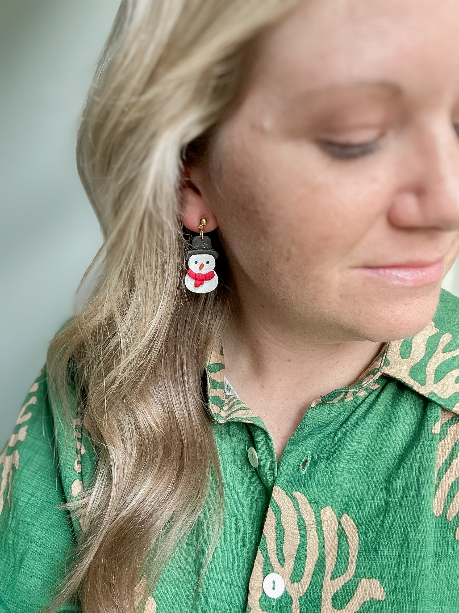Lightweight, handmade clay dangles measuring just shy 1 3/4 inches in length.
