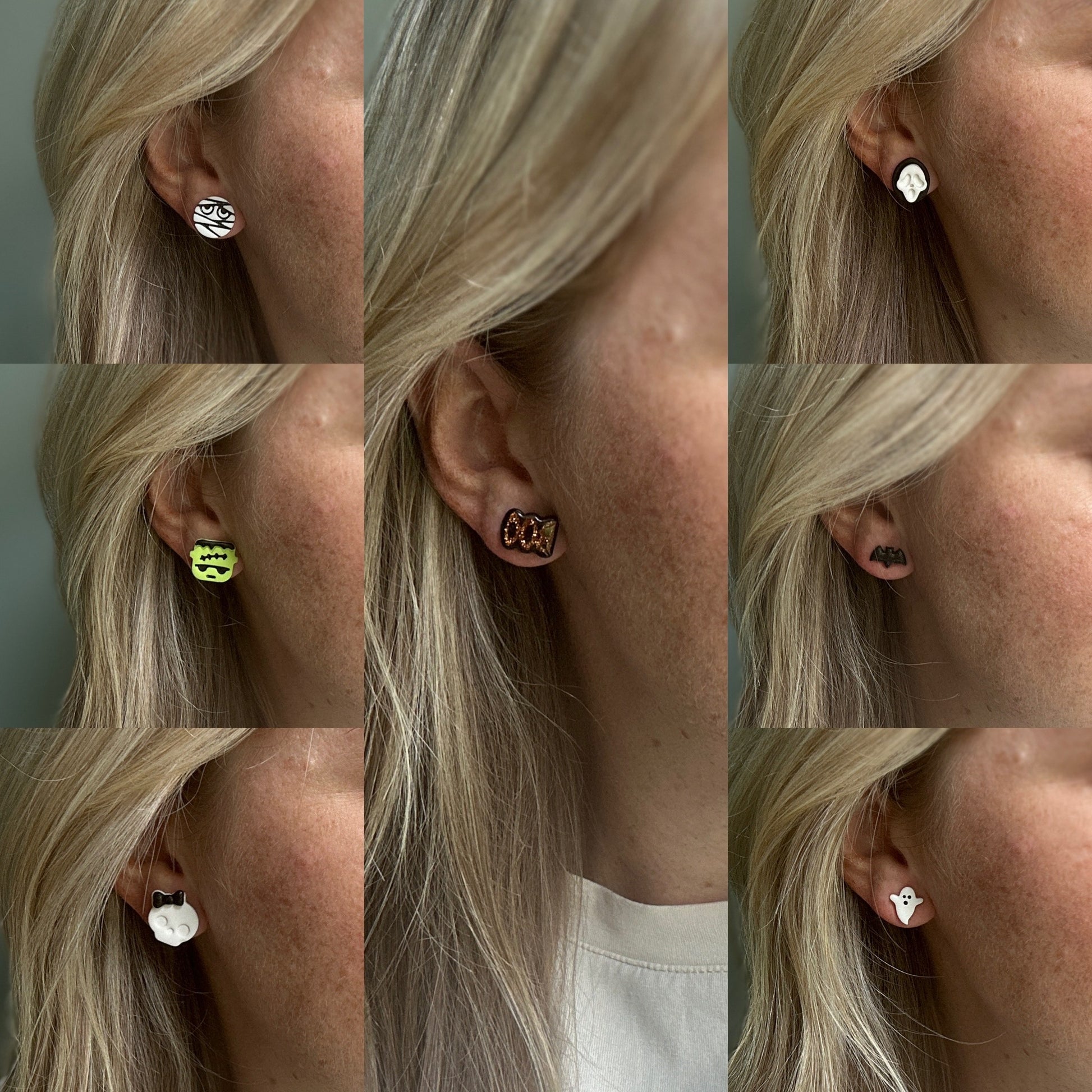 Handmade, lightweight clay studs all with surgical stainless steel earring posts, perfect for those with sensitivities.