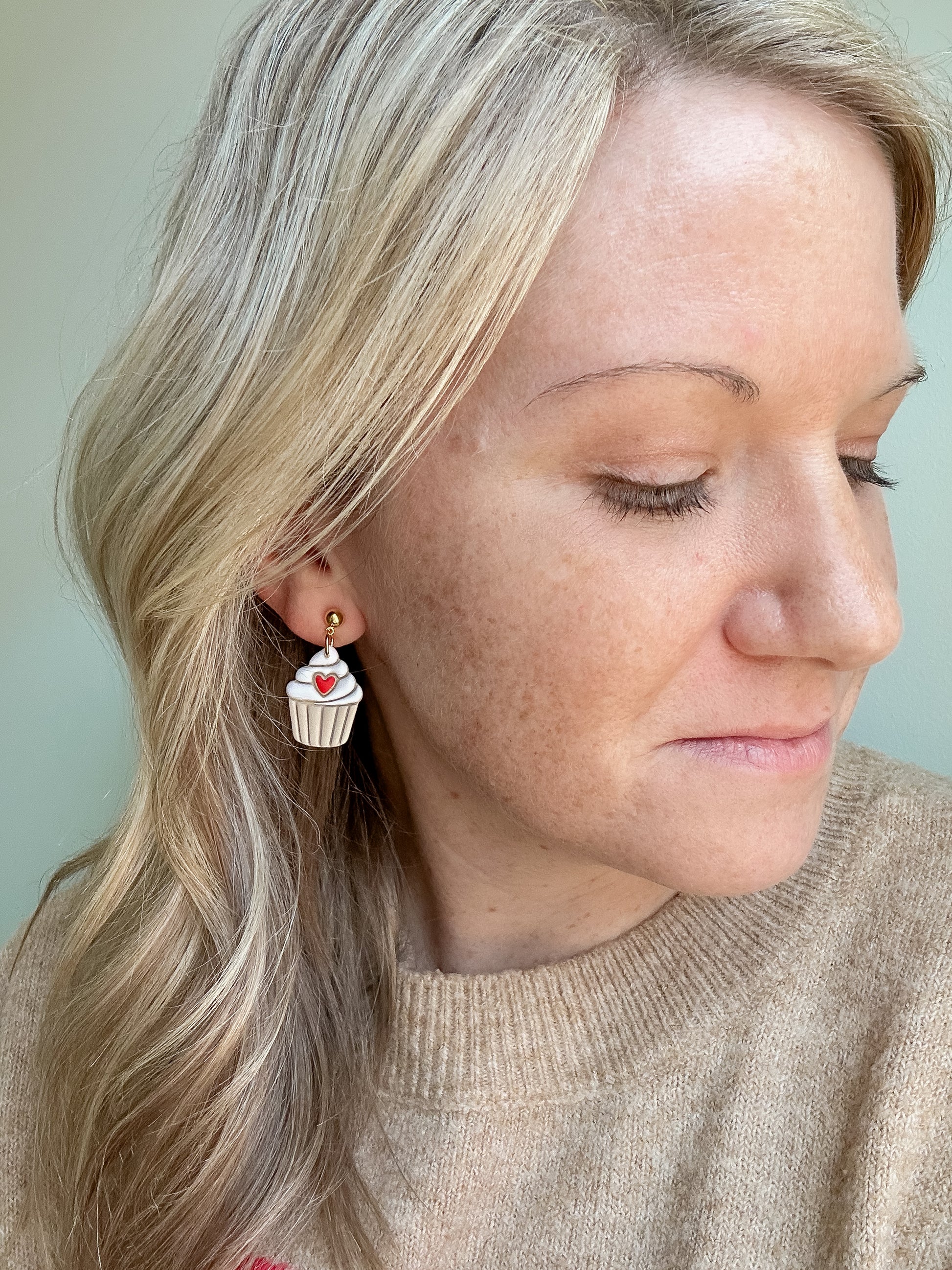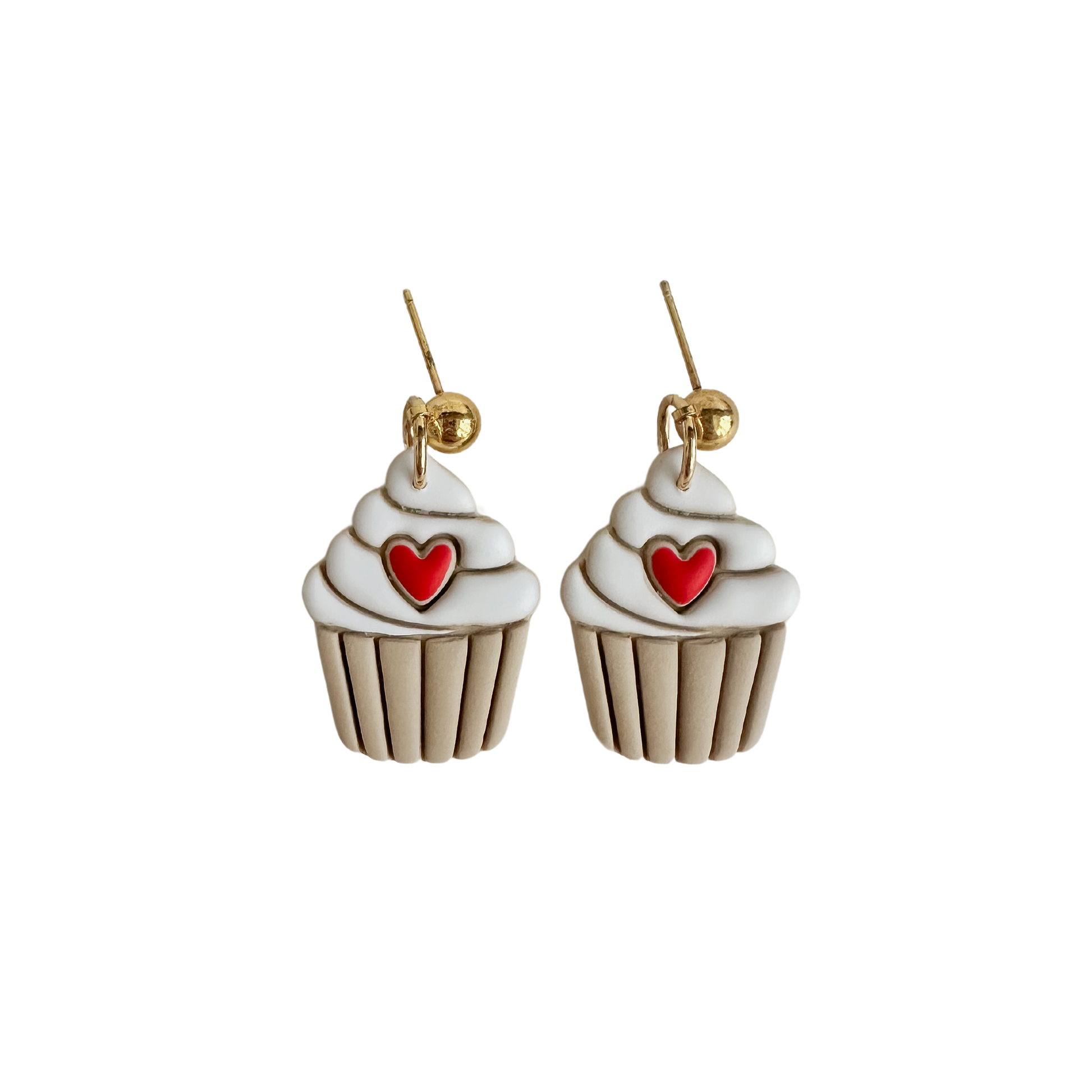 Handmade clay dangles measuring 1 1/2 inches in length with a ball point stud post.