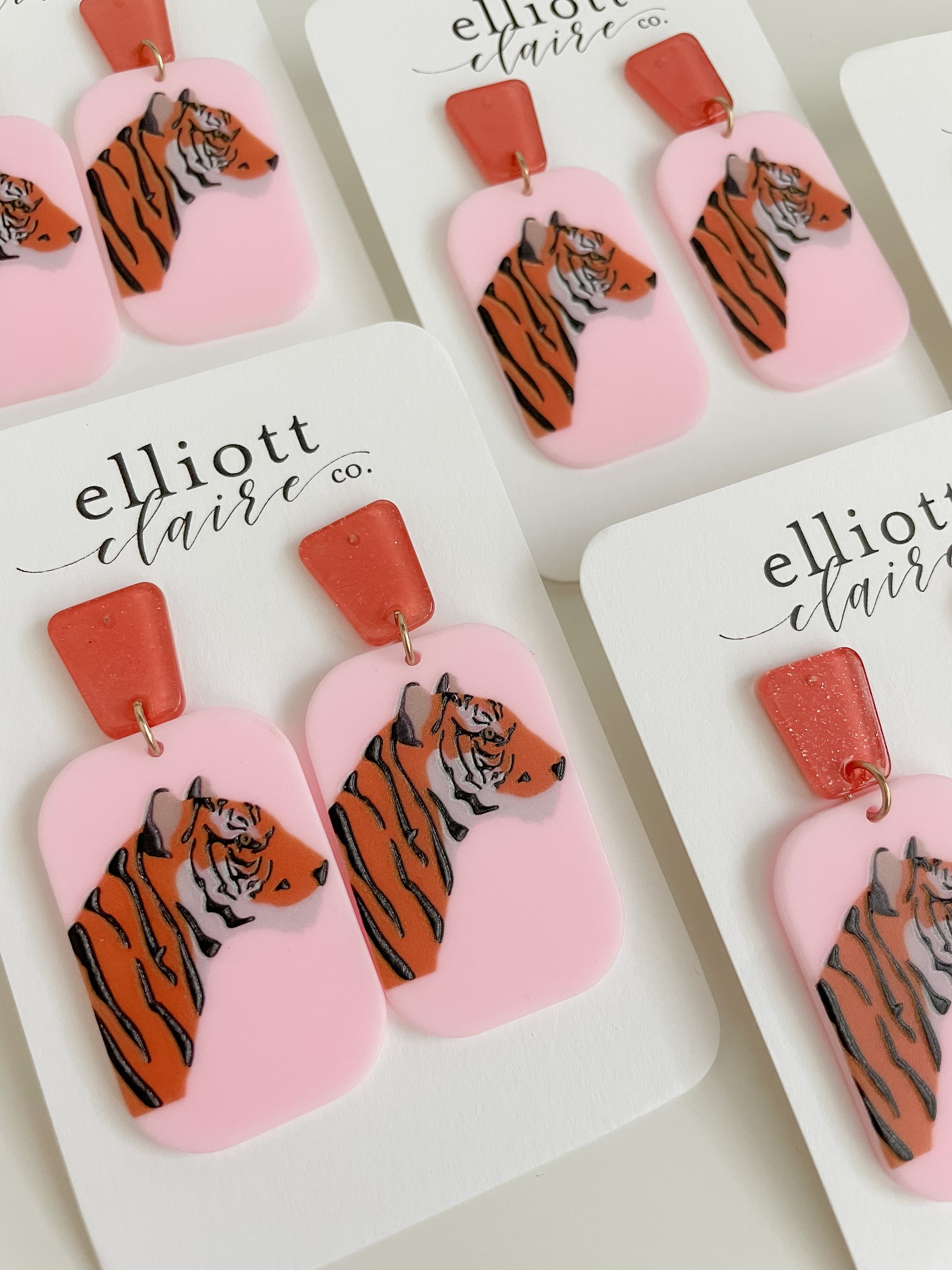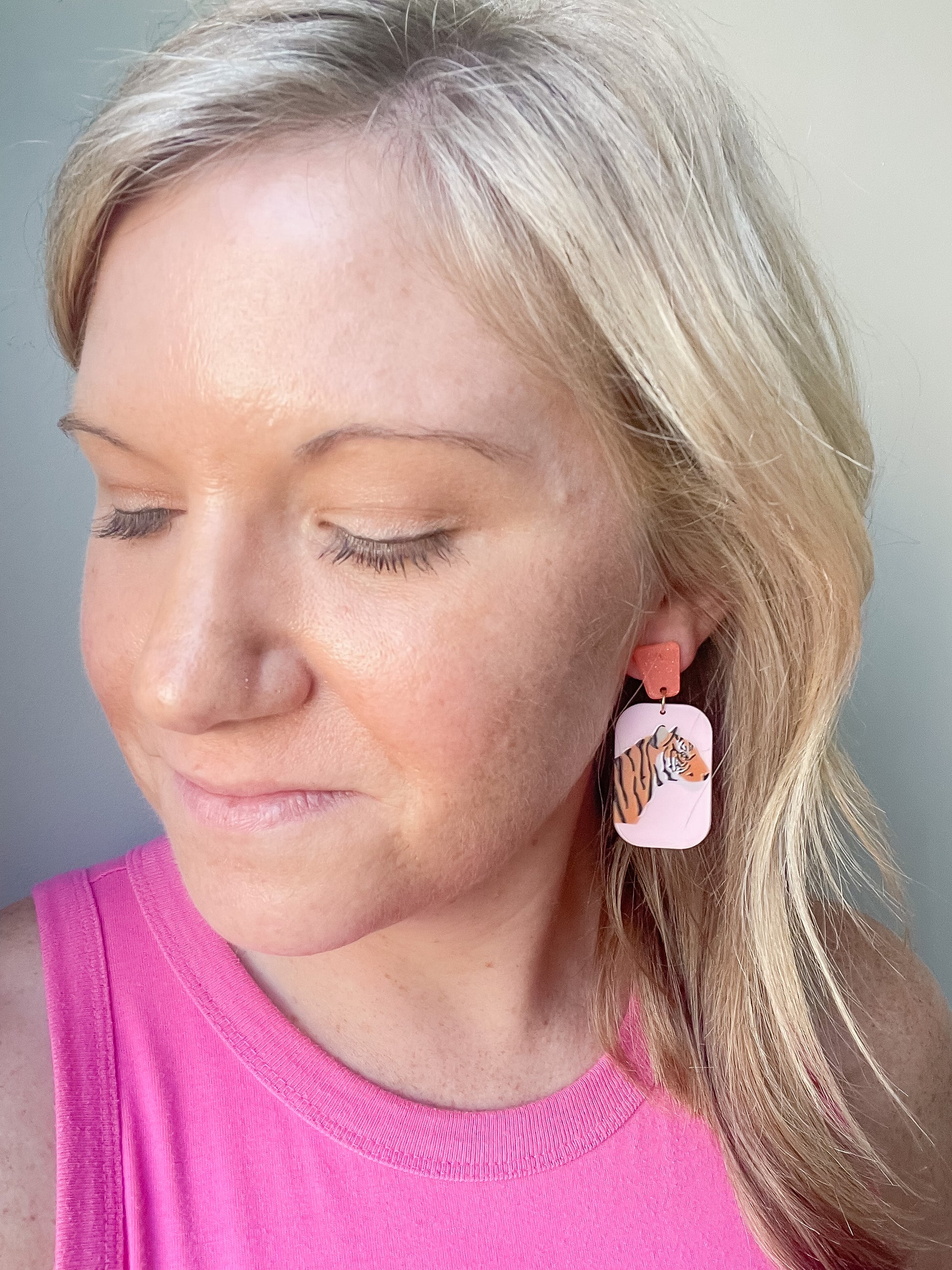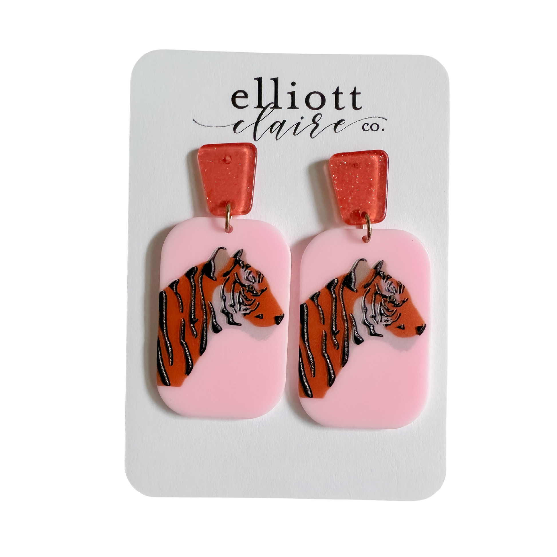 Lightweight acrylic dangles measuring 2 1/4 inches in length.