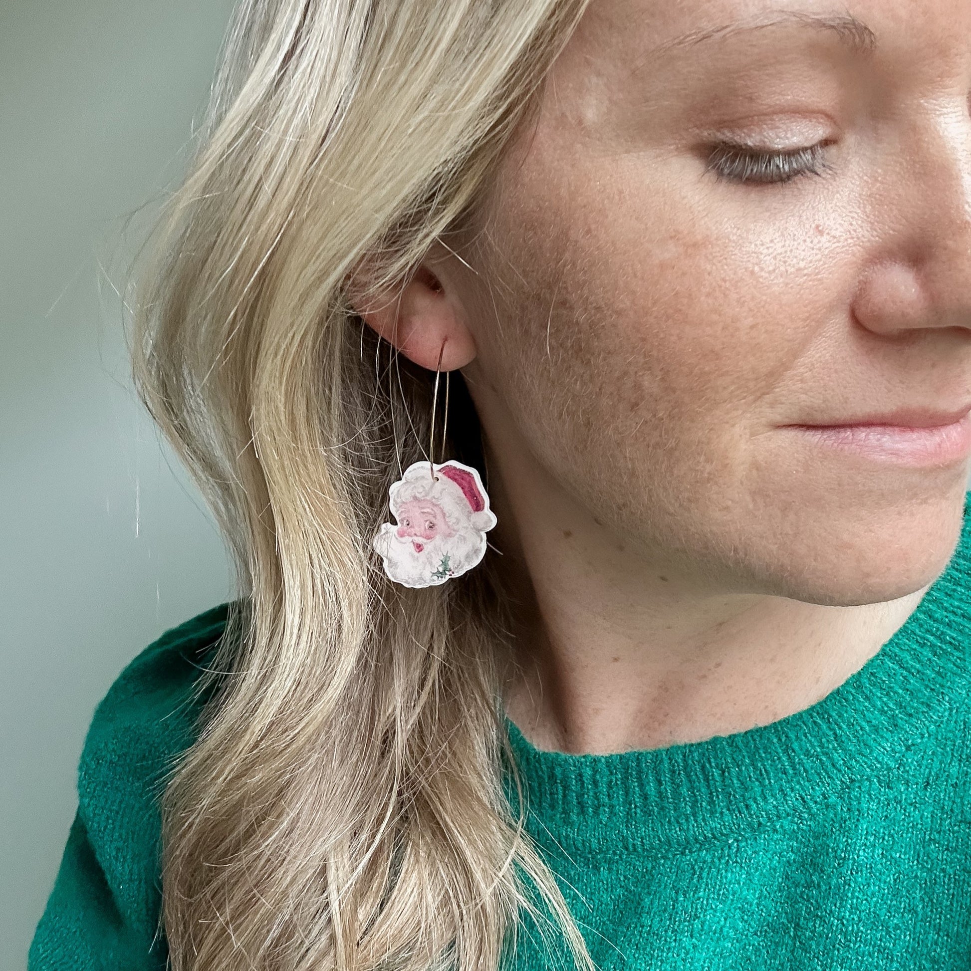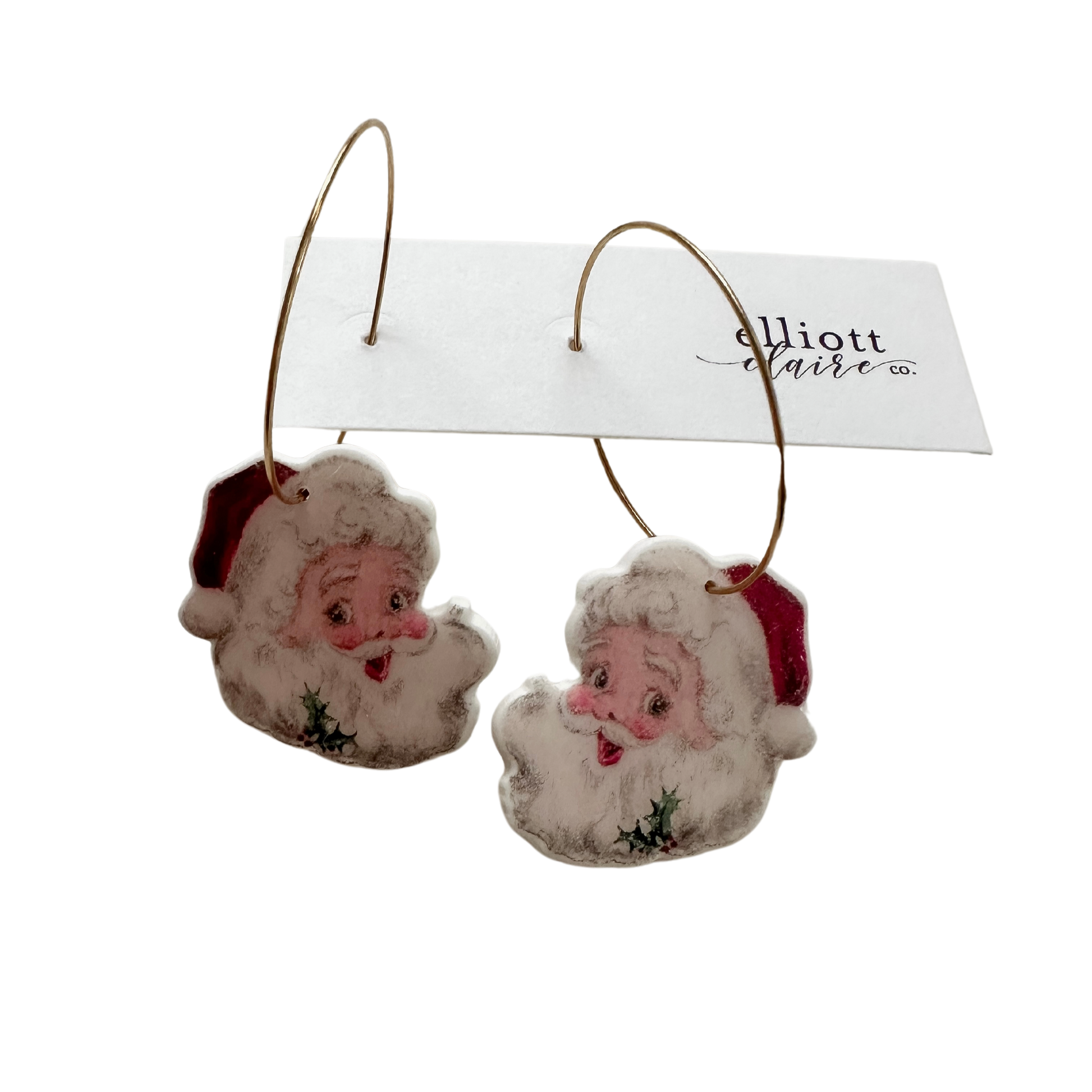 Lightweight, handmade clay hoops measuring 2 1/2 inches in length.