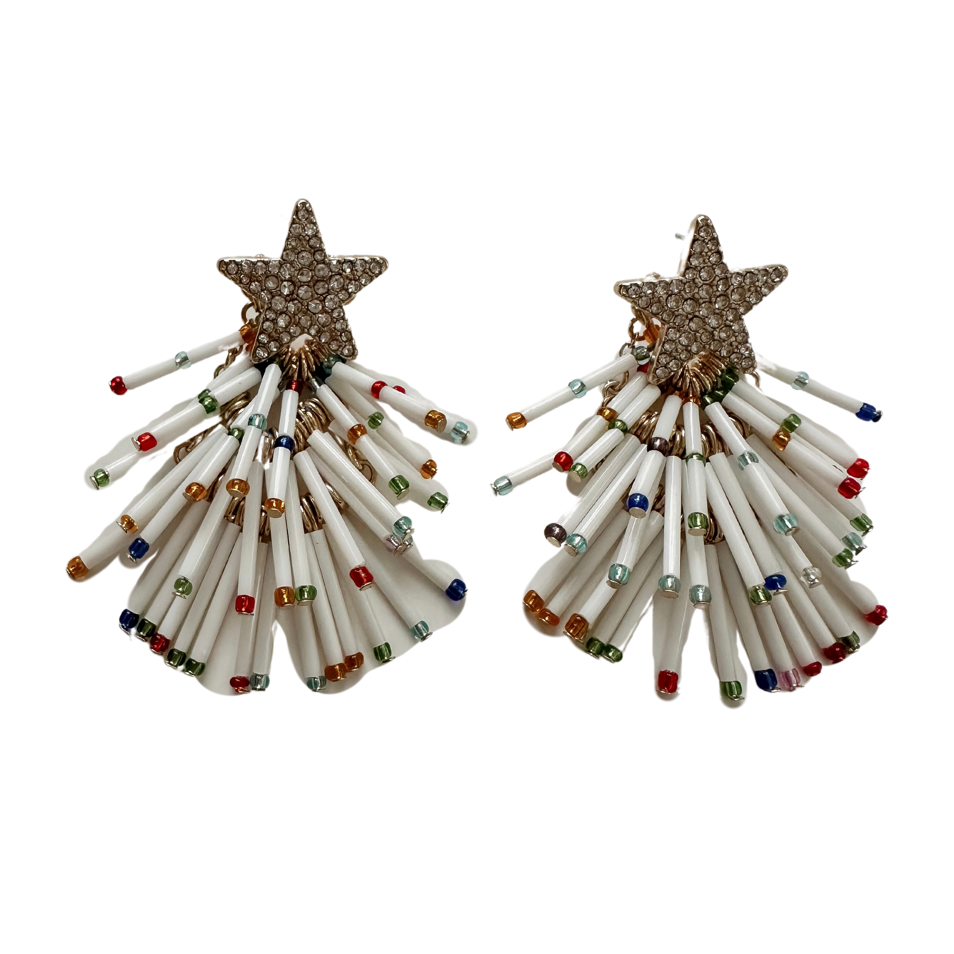 Beaded Christmas tree dangles measuring 2 inches in length.